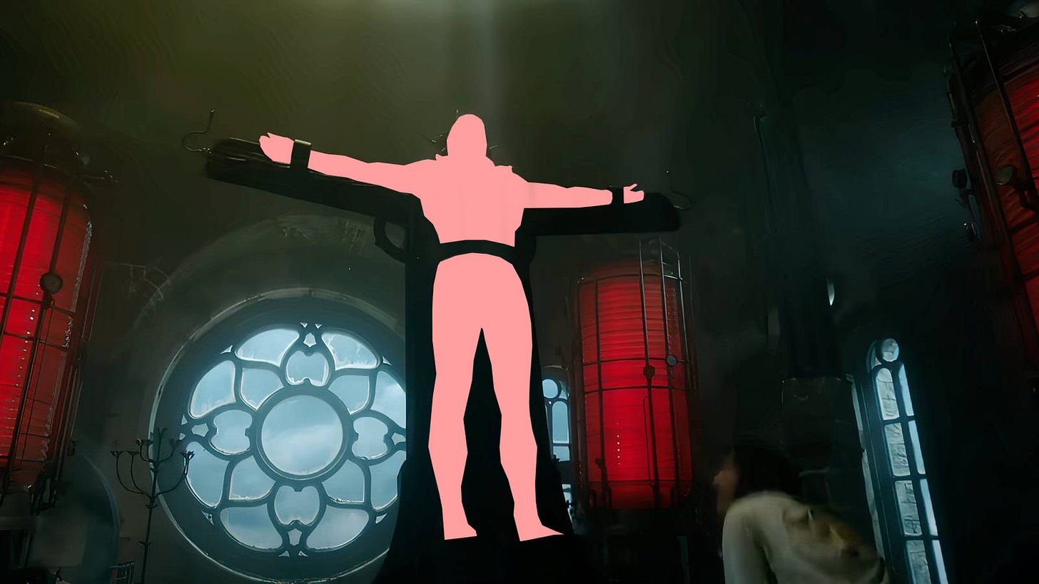 Famously, when people usually say “Frankenstein” they are referring the monster, not the doctor. This leads people to point out that “Frankenstein is the doctor, not the monster!” and here you can a free Media Literally medal and a little pat on the head for saying “actually, Doctor Frankenstein is the monster” just as William does in Guillermo Del Toro’s Frankenstein (2025). The reason this discourse propagates is that the clash between the meaning of the text and the spectacle of the 8 foot man made of corpse parts, many feel leads us to culturally miss the point.